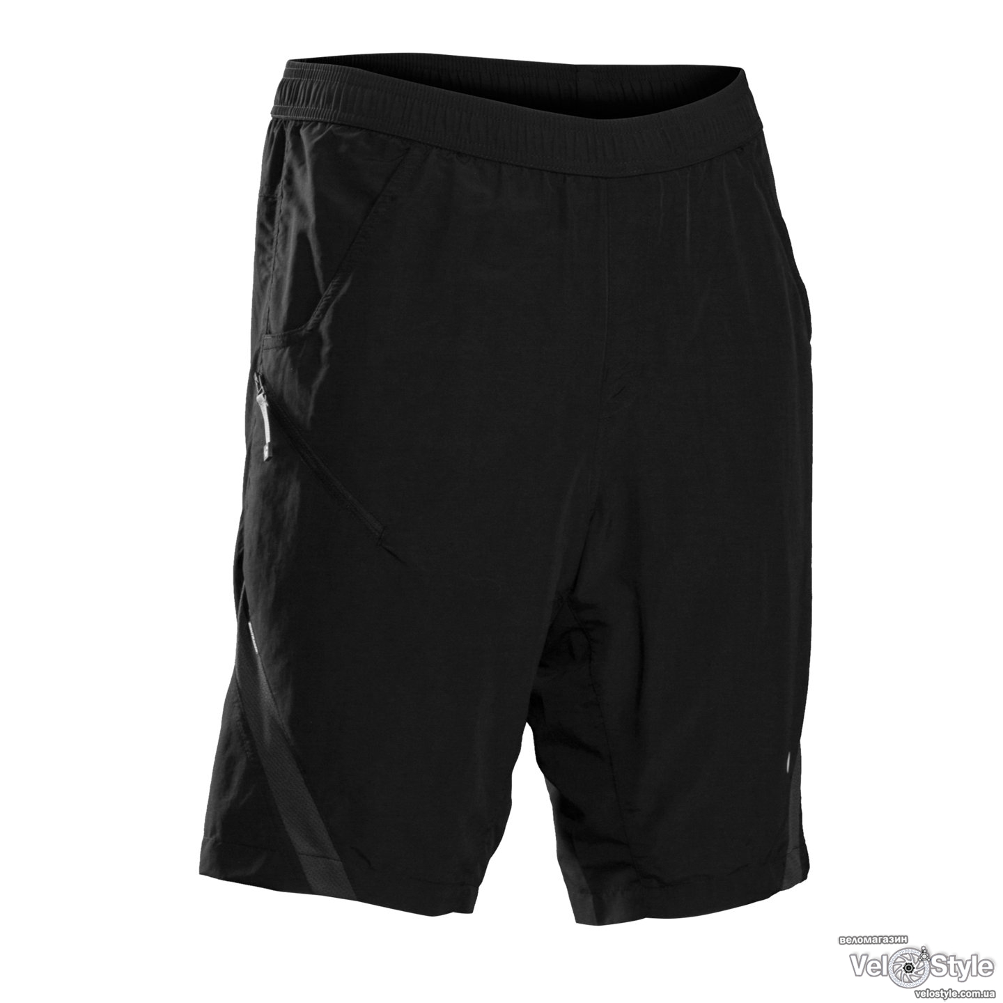 Велошорты Bontrager Dual Sport Short + трусы с памперсом, мужские, свободный стиль без ограничения свободы движений, синтетический мембранный материал, два кармана для рук и один на молнии.