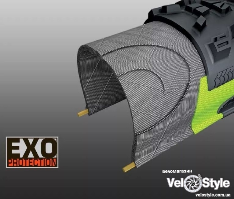 EXO PROTECTION - экстремально прочный материал, размещенный в боковинах покрышки, исключающий боковые порезы покрышек при использовании на каменистых и горных трассах. Тонко сплетенный материал очень легок и гибок, благодаря чему его использование не ухудшает свойств покрышки.