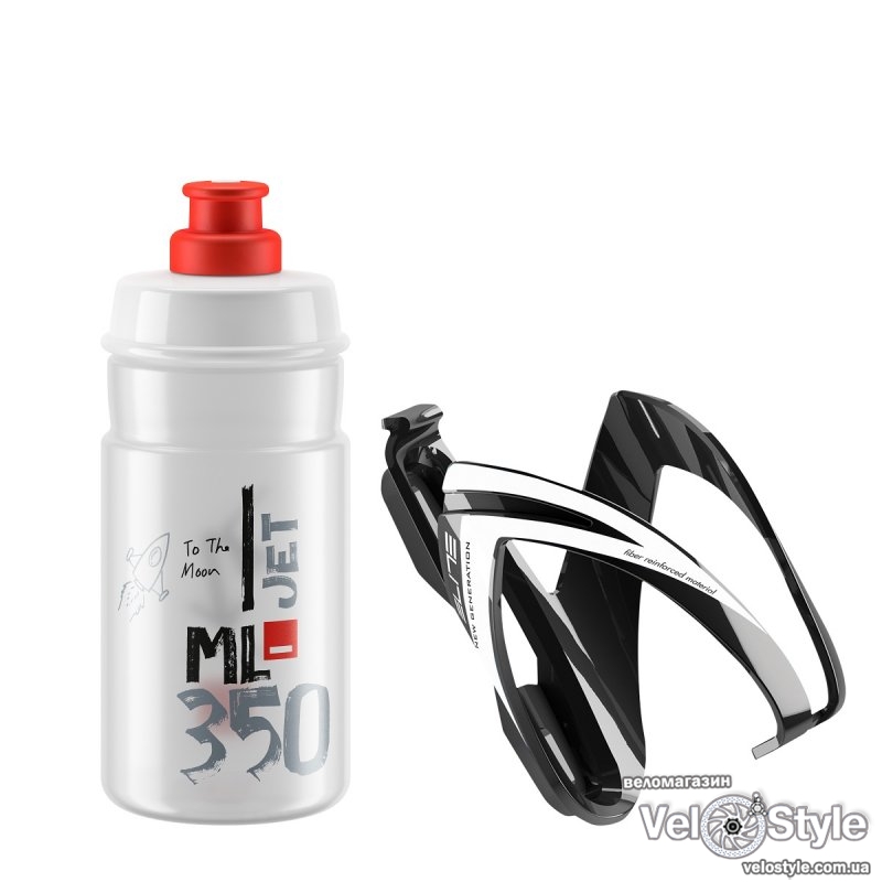 Фляга ELITE CEO JET 350m с черно-белым флягодержателем, чёрная