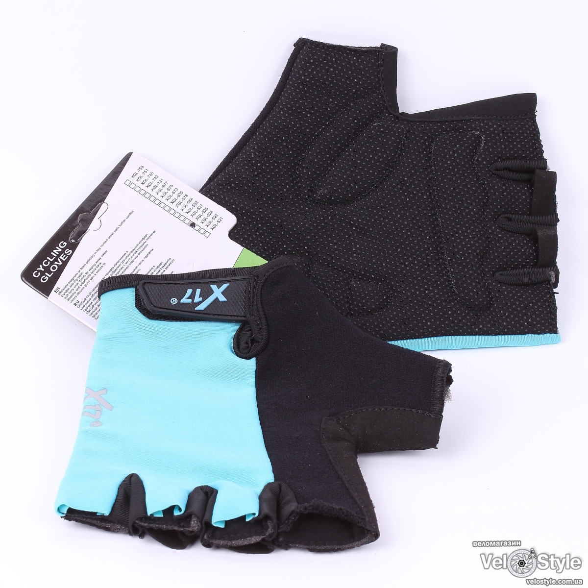 Велоперчатки X17 XGL-525TU бирюзово-черные