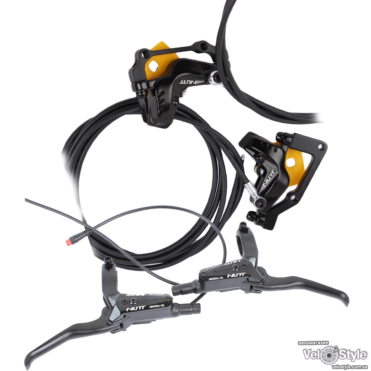 Тормоз дисковый Nutt Y-5zz07, правосторонние 4 поршня (задний + передний) с отс. дв., мин. масло под електросамокат