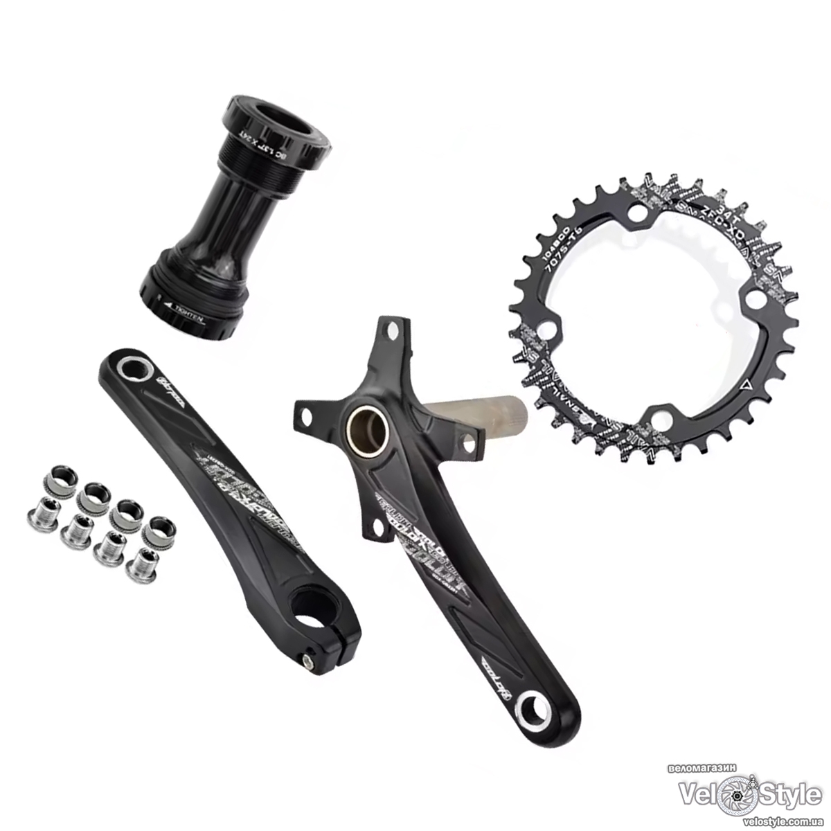 Шатуны OnRide Solo 1110 Hollowtech, 170 мм, 34T BCD: 104 мм, на 11,10,9ск., черные c кареткой